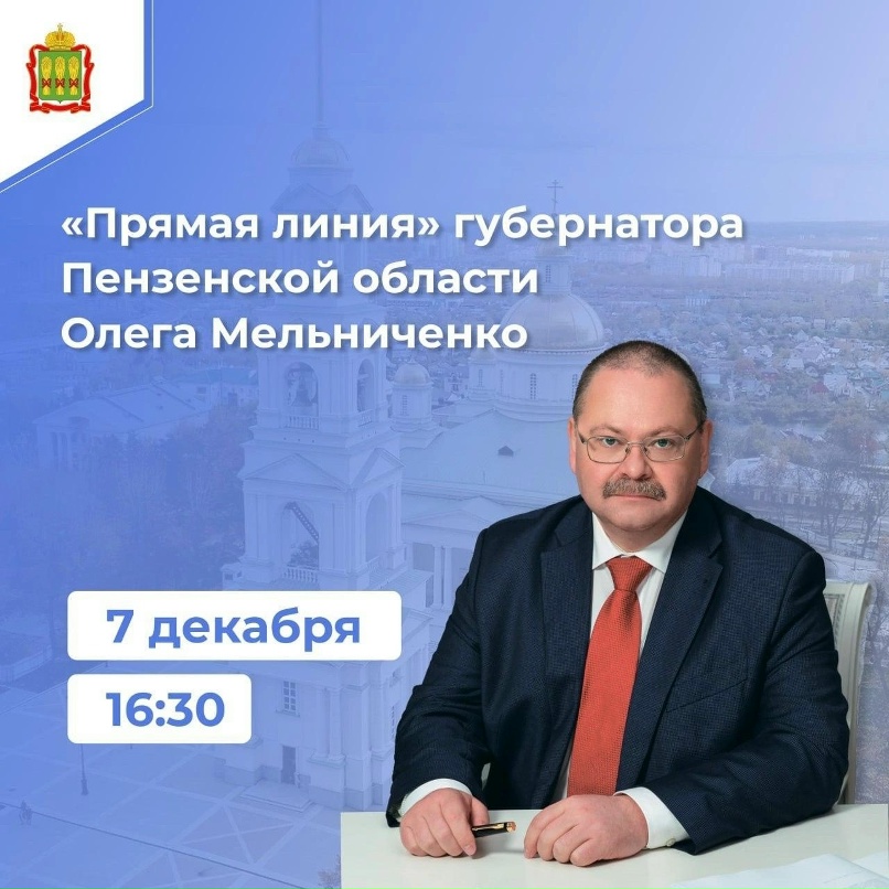 7 декабря в 16.30 Олег Мельниченко ответит на вопросы жителей Пензенской области в ходе «Прямой линии». Ни одно сообщение не останется без внимания.